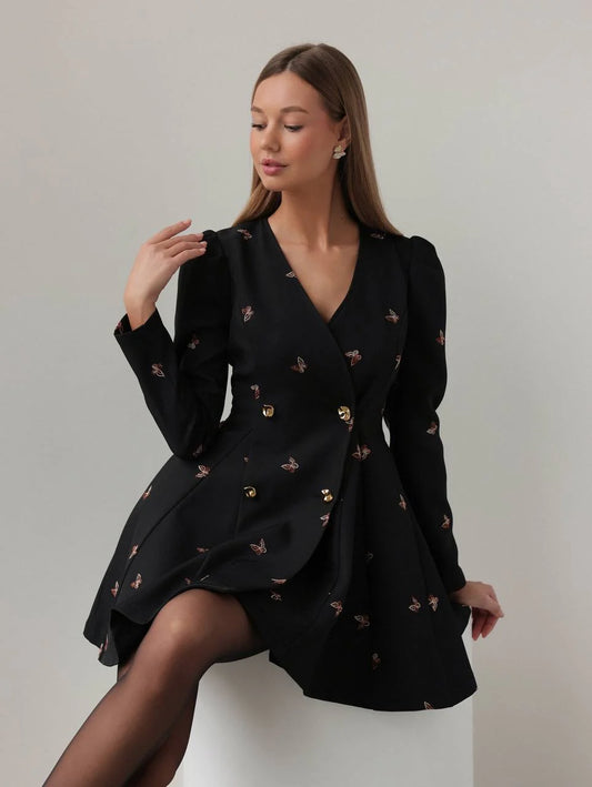 Mini-robe noire brodée de papillons